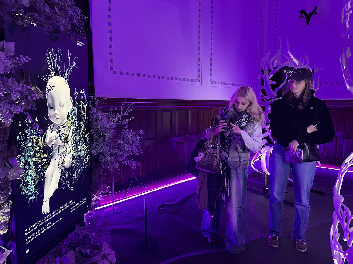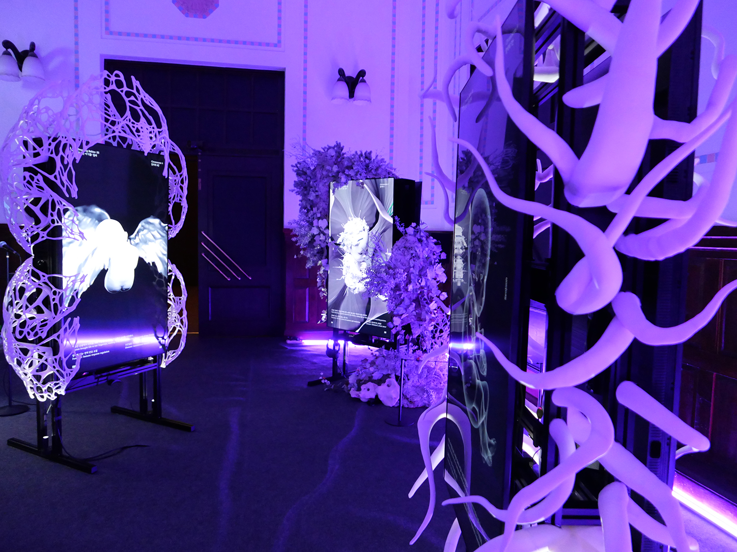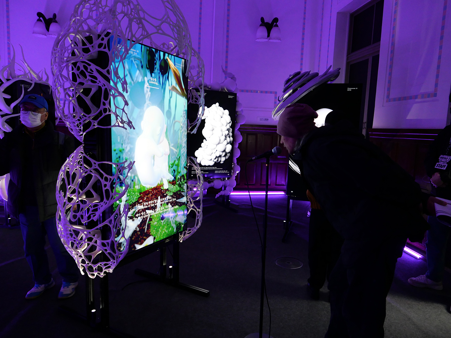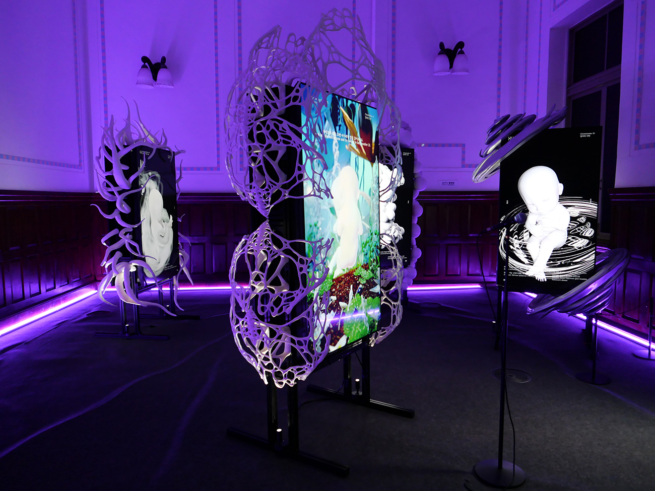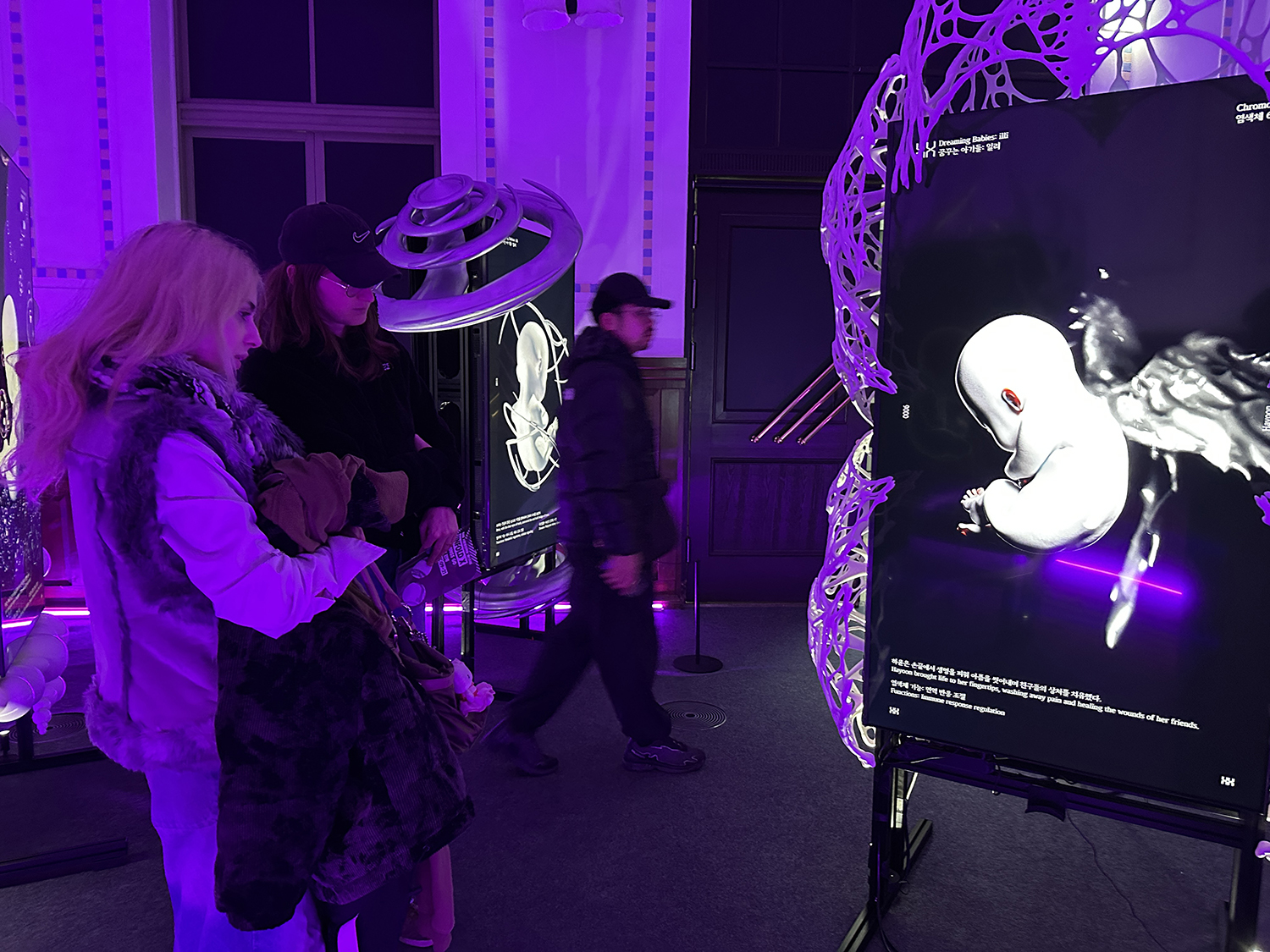 The artwork “Dreaming Babies: illi” presents 23 special hybrid human babies, each with a different chromosomal anomaly, sleeping and dreaming inside their own virtual incubator in space, weaving stories through their unique identities. This project explores new speculative human designs, addressing humanity’s desire to create a perfect being through genetic technologies, the fusion of science and cloning, the many possibilities and uncertainties of future human birth, and the ethical dilemmas surrounding genetic modification. Each baby’s story, generated from genetic data, is created in collaboration with artificial intelligence. Visitors can interact with the sleeping babies in real time by inputting sound through a microphone, connecting with them via the ChatGPT system. The videos of babies floating in space can be viewed on each screen, where audiences can observe how genetic anomalies are reimagined not as physical difficulties, but as representations of more unique and special forms of humanity.